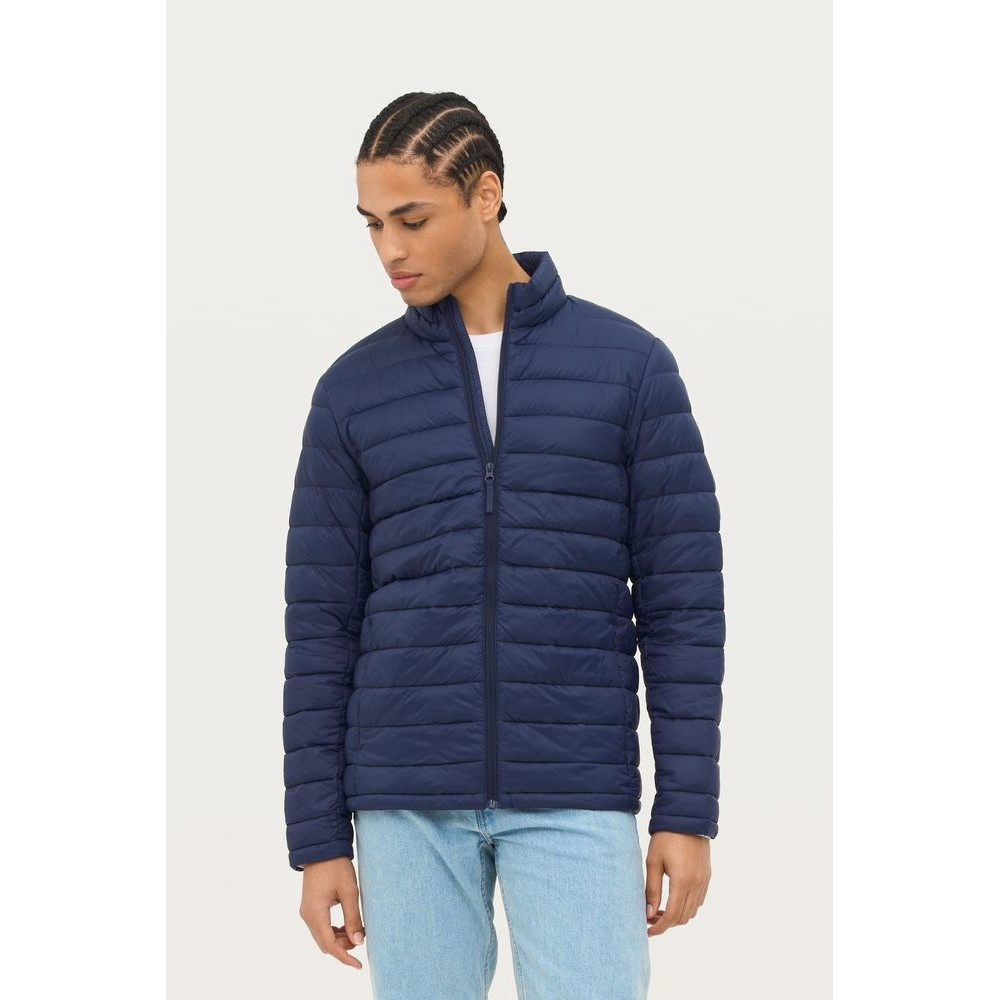 Легкая стеганая куртка облегающего кроя на молнии с воротником-стойкой.