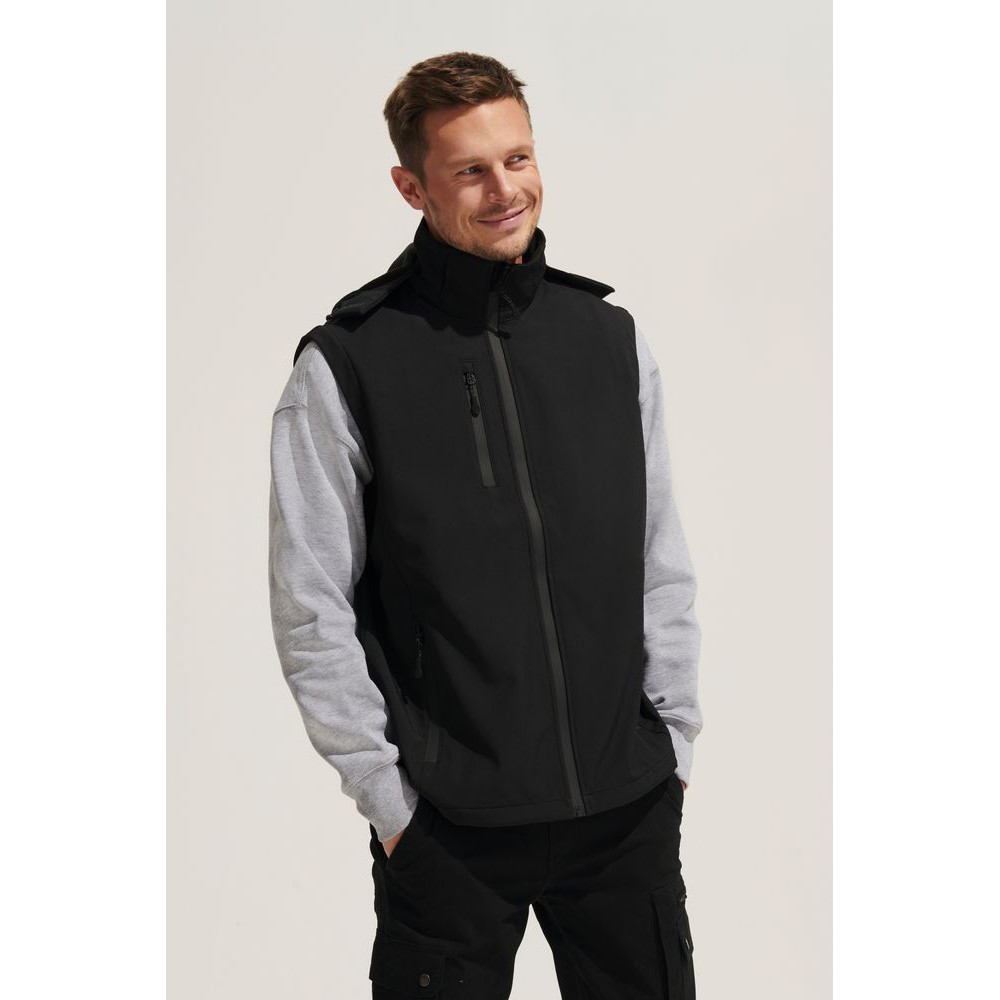 Влагоустойчивая и ветрозащитная куртка-трансформер из материала Softshell, выполненного из переработанного полиэстера. Отстегивающиеся рукава и капюшон позволяют выбрать ту конфигурацию, которая больше всего соответствует погоде за окном.