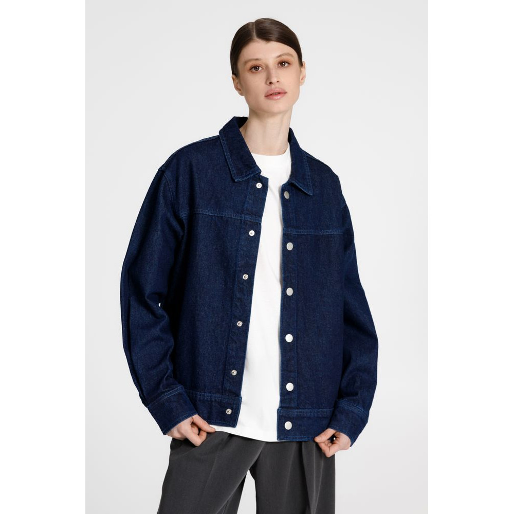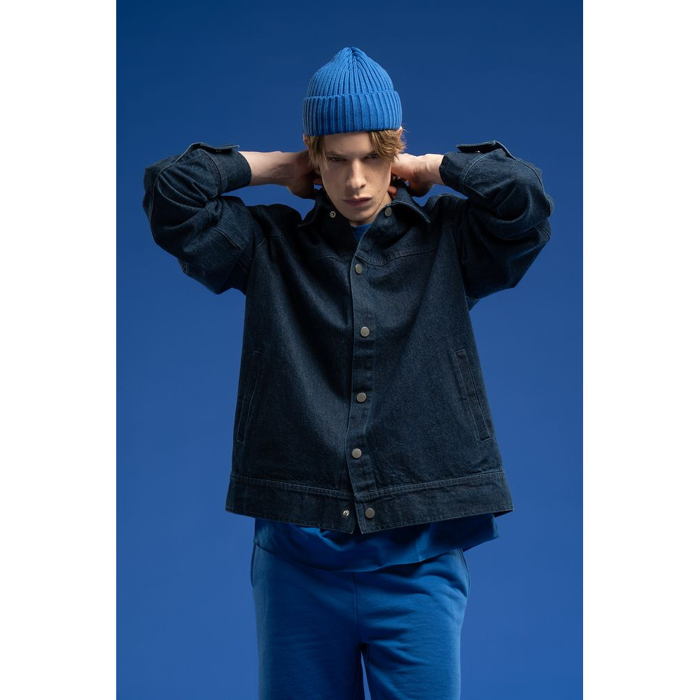 Джинсовая куртка унисекс на кнопках свободной посадки.
