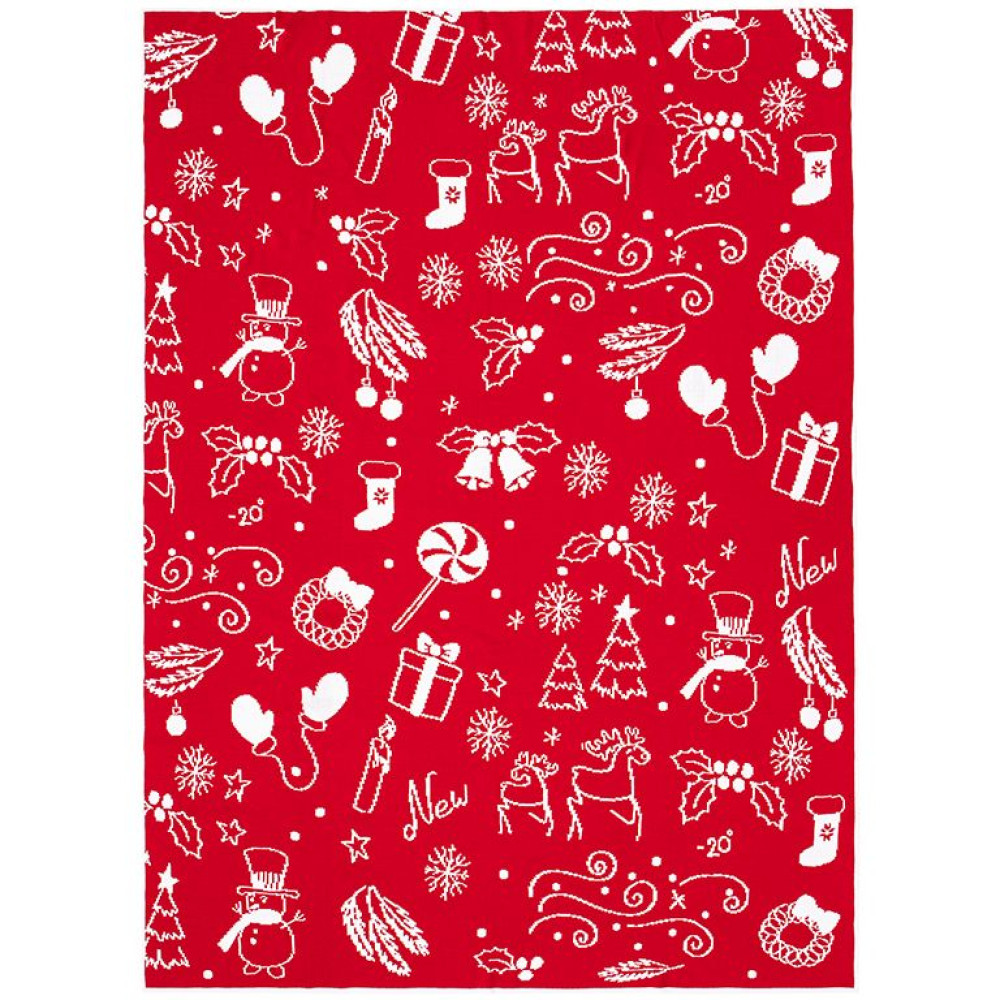 Плед с вывязанным логотипом и индивидуальным рисунком в фирменной цветовой гамме.