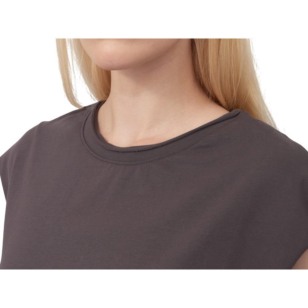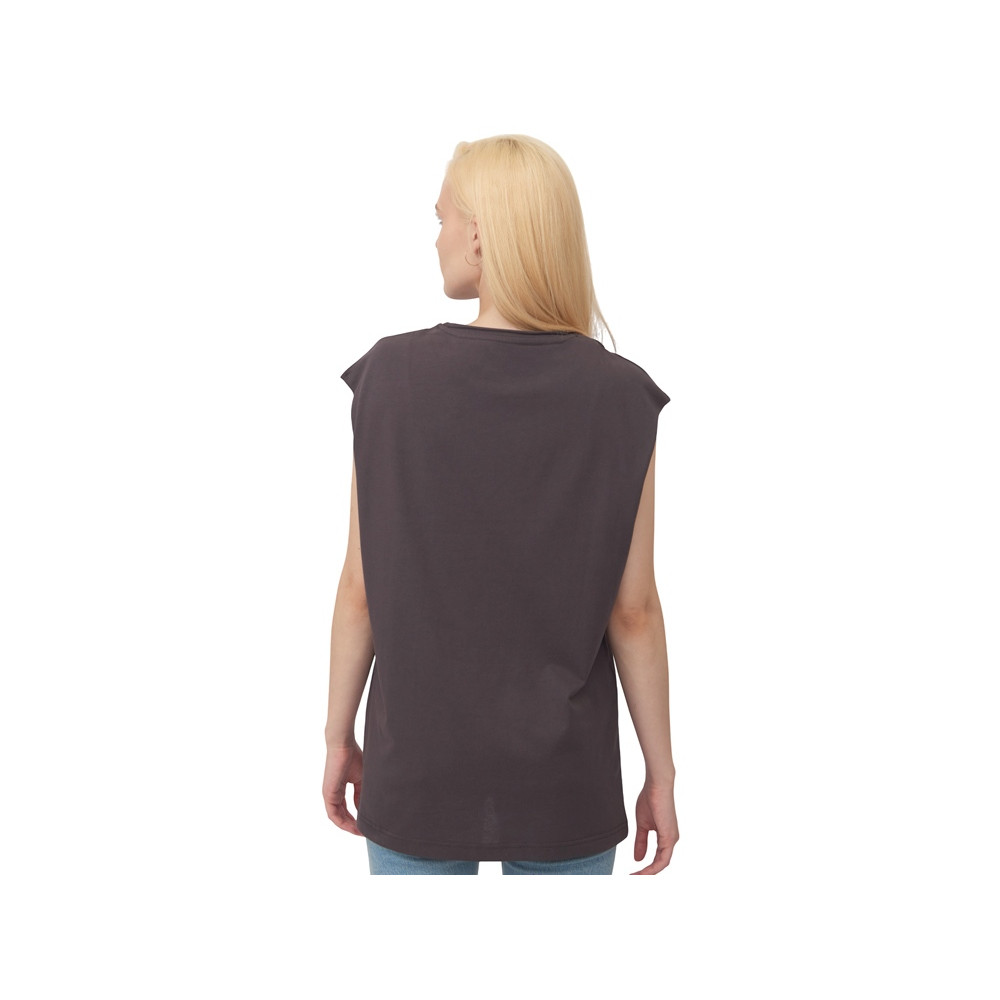Расслабленная посадка модели и необработанные швы проймы и края горловины позволяют чувствовать себя комфортно и оставаться на волне трендов.