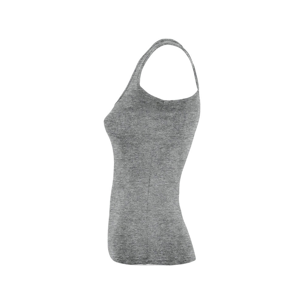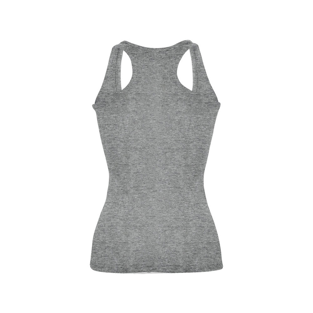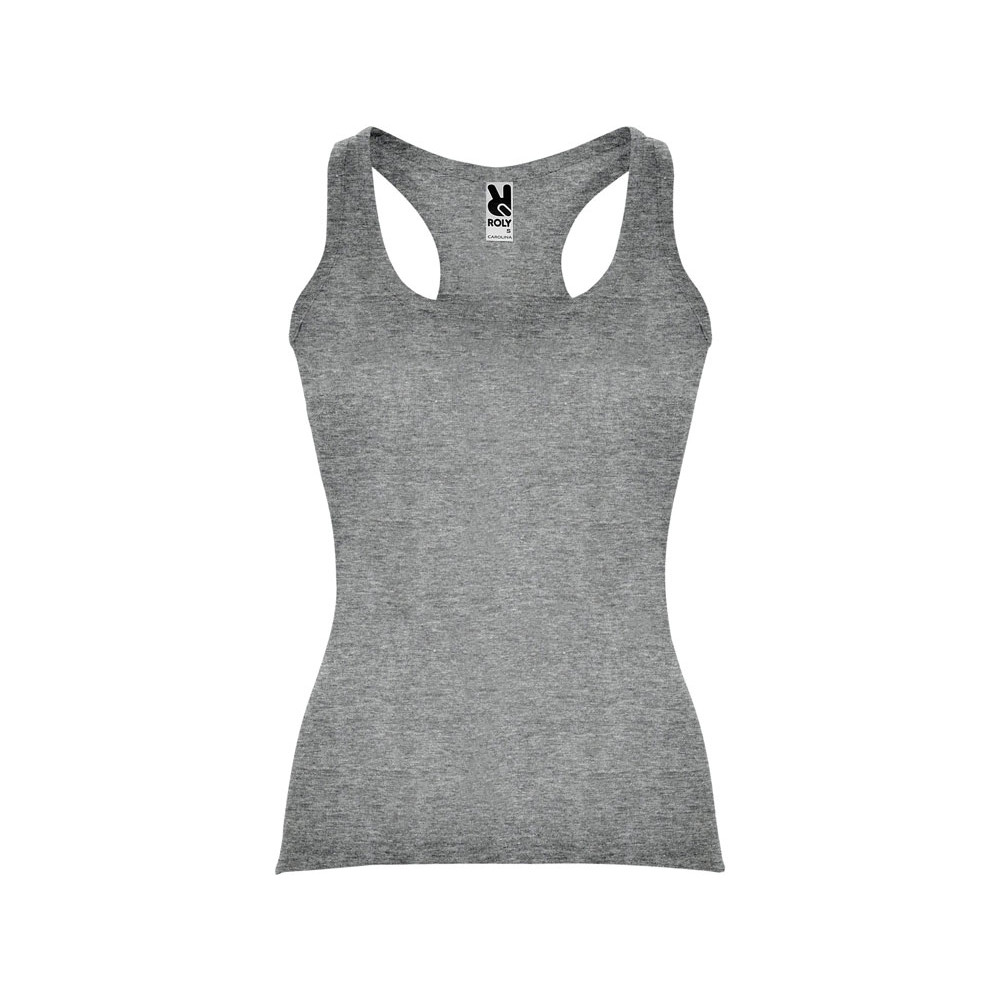 Майка приталенного силуэта с глубоким круглым вырезом горловины. Спортивная спинка, боковые швы.