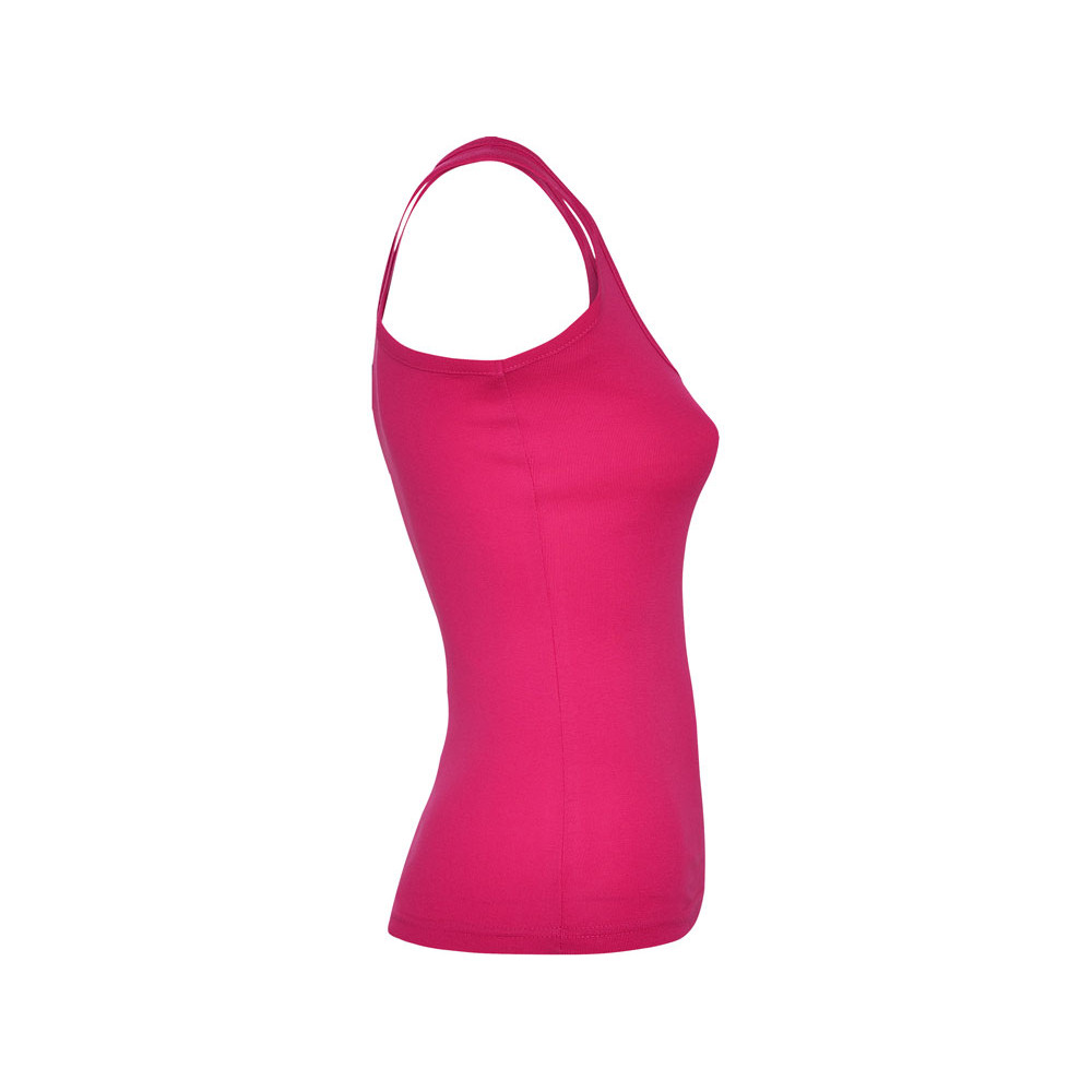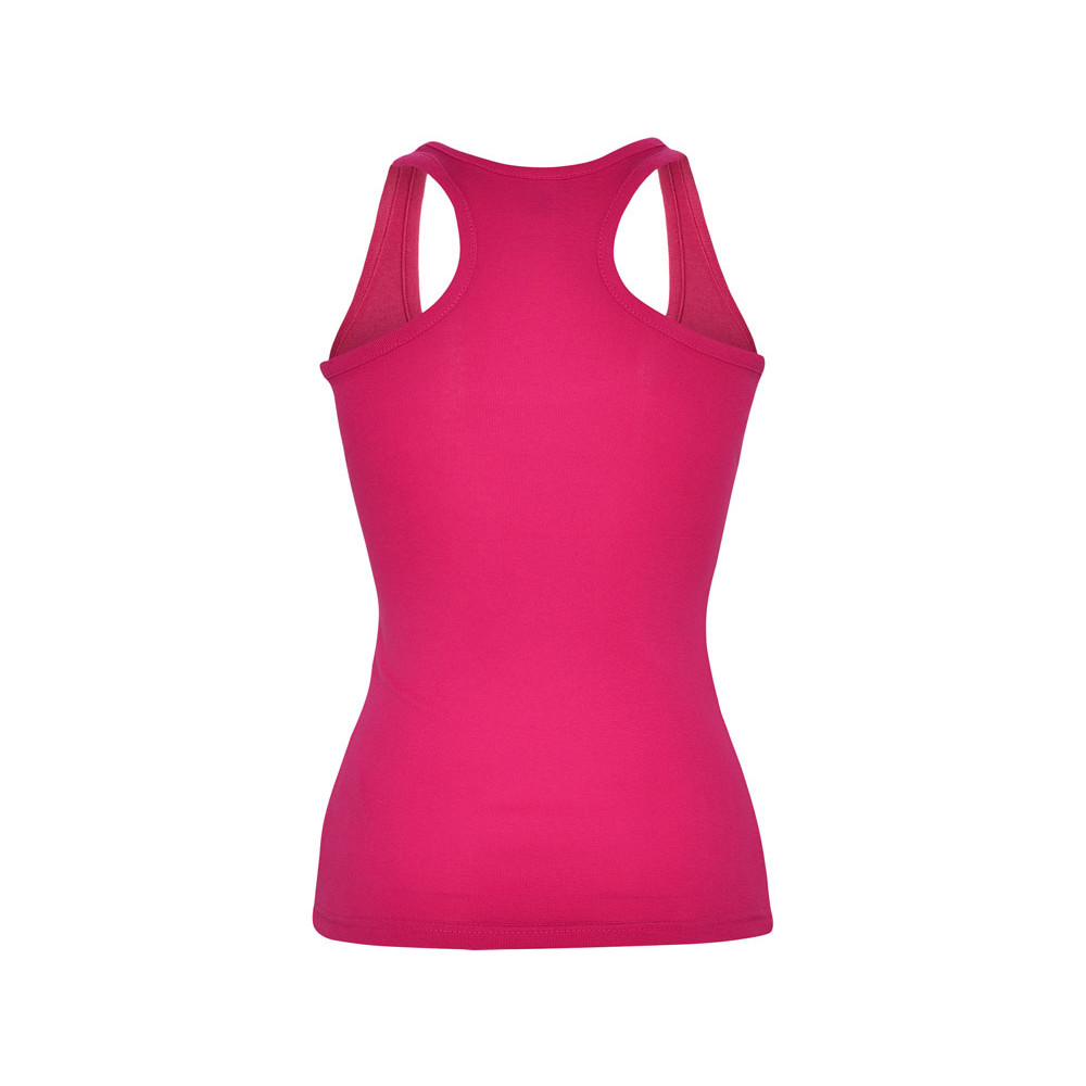 Майка приталенного силуэта с глубоким круглым вырезом горловины. Спортивная спинка, боковые швы.