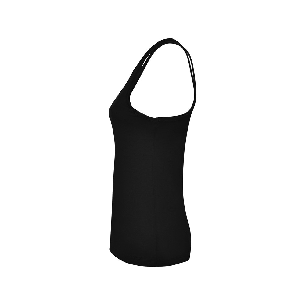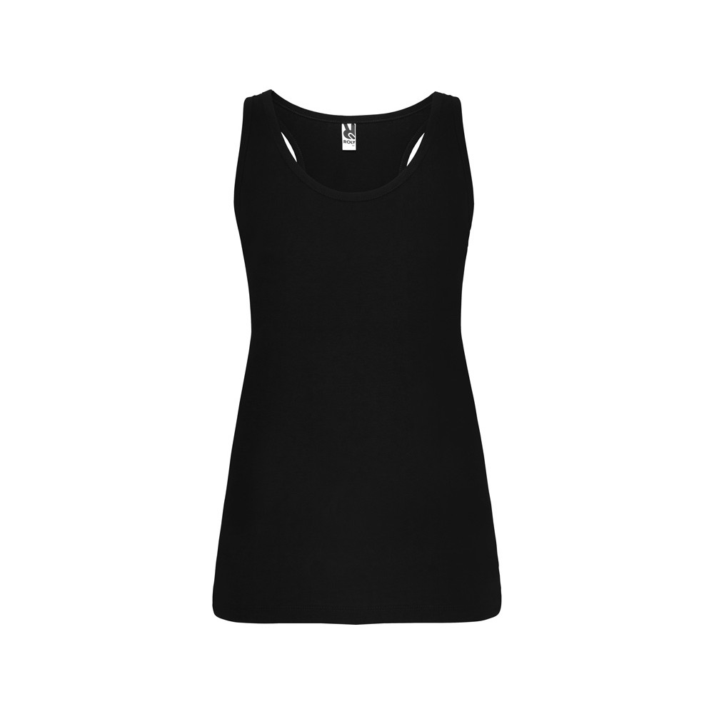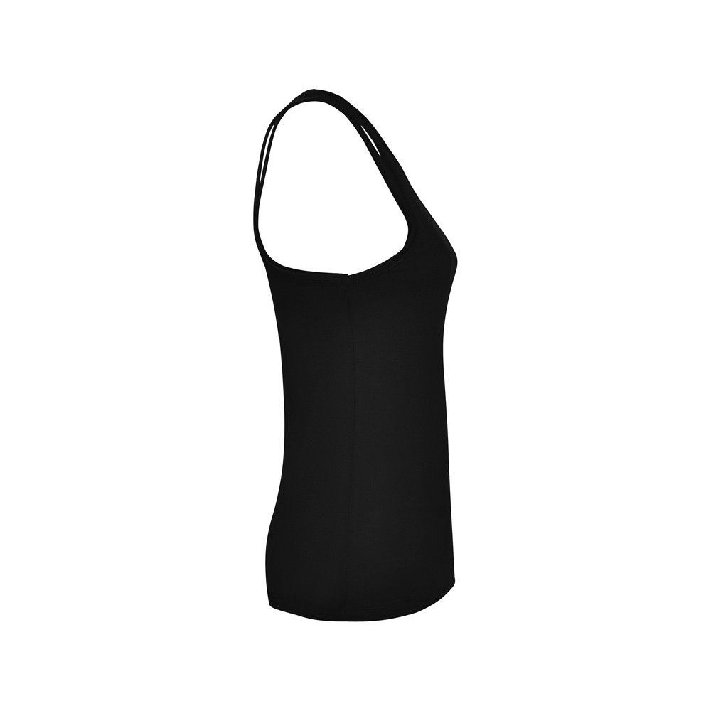 Майка узкого силуэта, горловина и проймы обработаны рибом. Спортивная спинка, боковые швы.