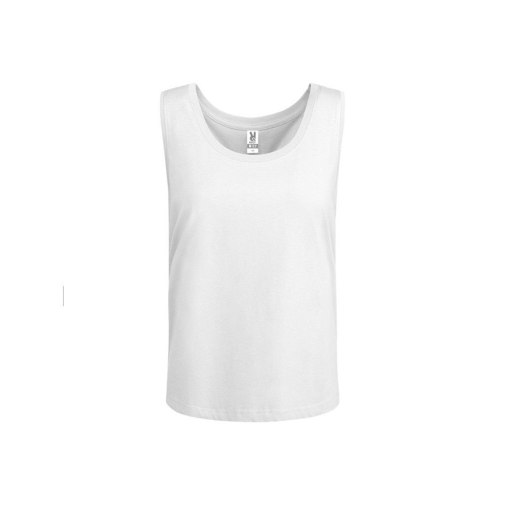 Свободная женская футболка с широкими бретелями. Вырез и проймы обработаны бейкой из риба 1x1. Подол округлой формы. Боковые швы.