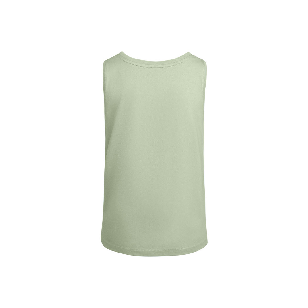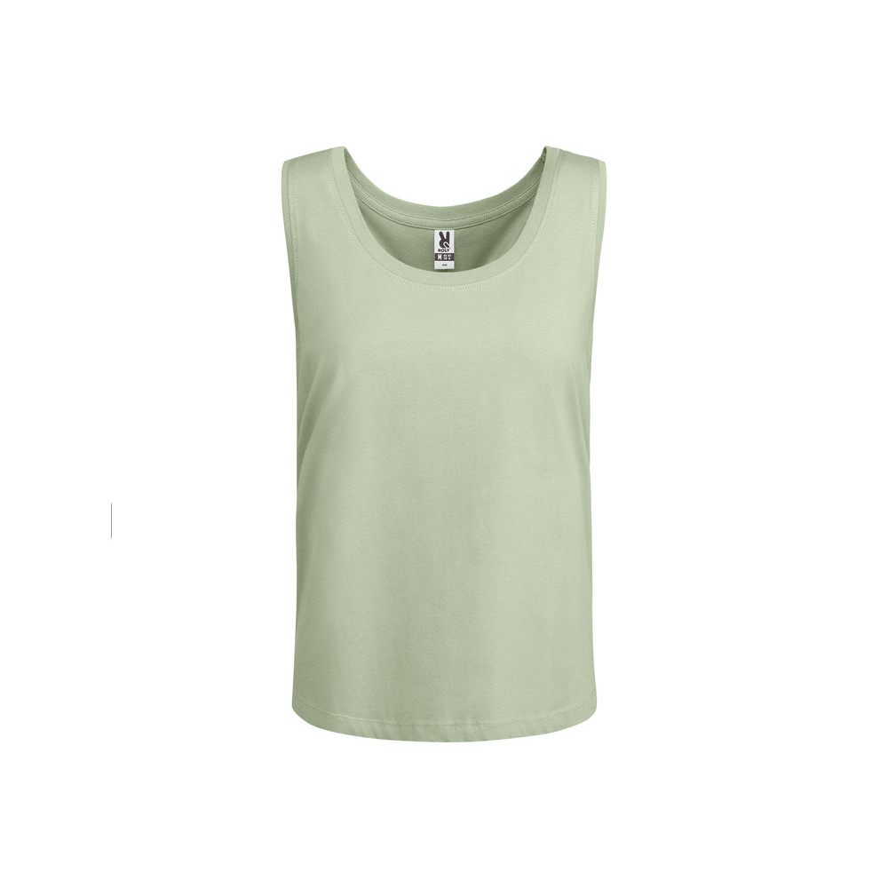Свободная женская футболка с широкими бретелями. Вырез и проймы обработаны бейкой из риба 1x1. Подол округлой формы. Боковые швы.