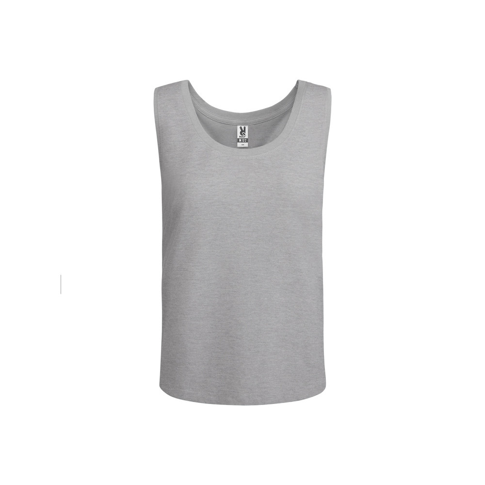 Свободная женская футболка с широкими бретелями. Вырез и проймы обработаны бейкой из риба 1x1. Подол округлой формы. Боковые швы.
