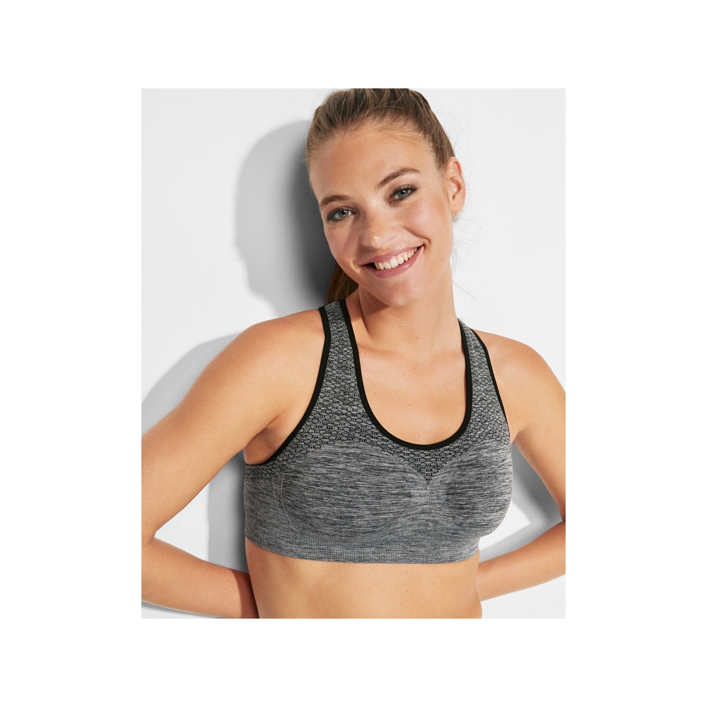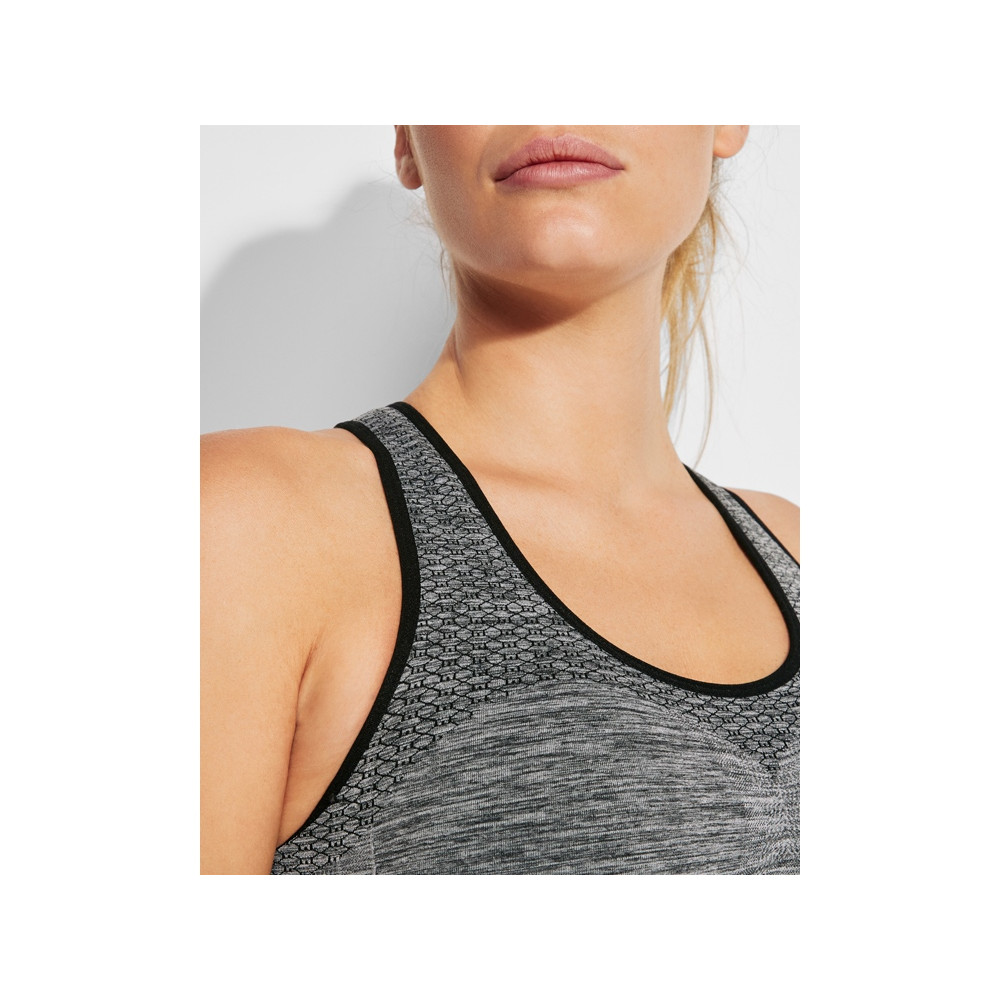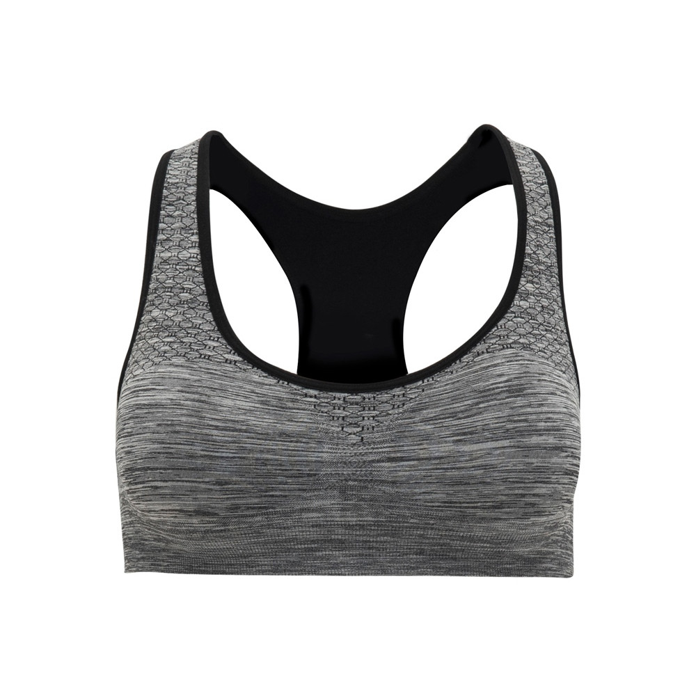 Женский топ для занятий спортом. Спинка-борцовка и бесшовная конструкция. Средняя степень поддержки.