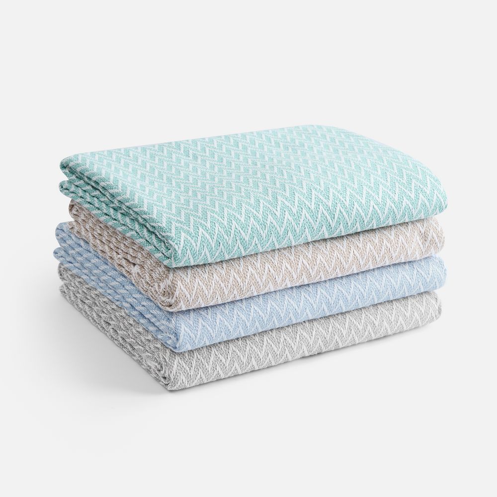 Плед Sagunt с ненавязчивым зигзагообразным узором и аккуратной бахромой подарит мгновения уюта и радости, порадует своим нежным дизайном и окутает теплом.