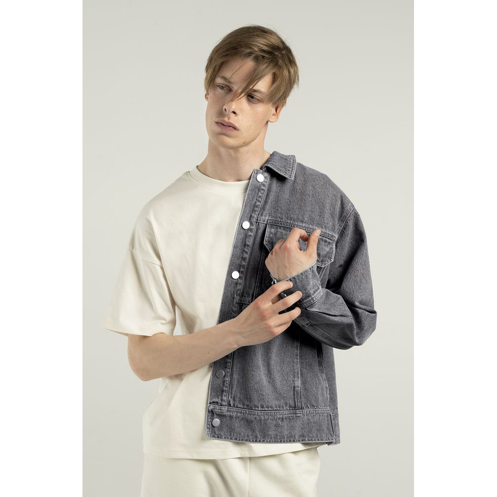 Джинсовая куртка унисекс на кнопках свободной посадки.