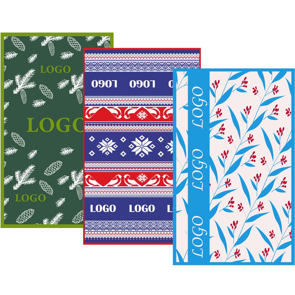 Плед с вывязанным логотипом и индивидуальным рисунком в фирменной цветовой гамме.