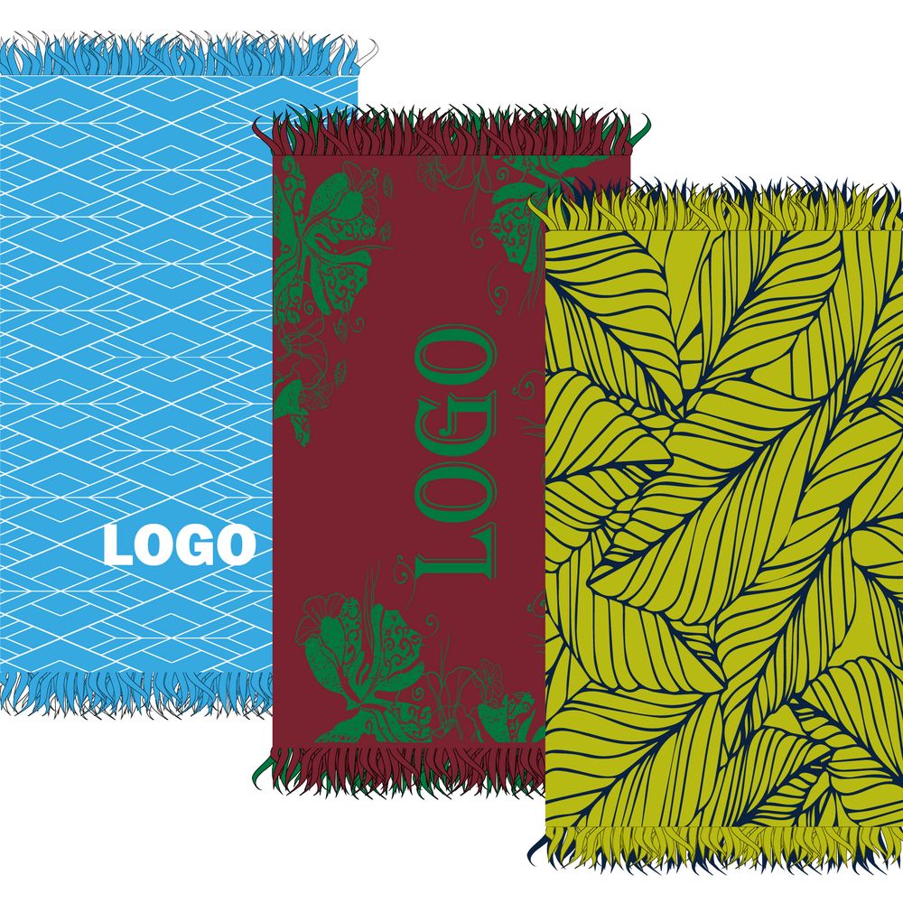 Плед с вывязанным логотипом и индивидуальным рисунком в фирменной цветовой гамме.