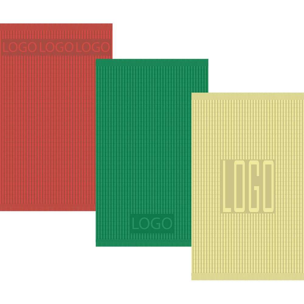 Плед с вывязанным логотипом и рельефным узором в фирменном цвете компании.