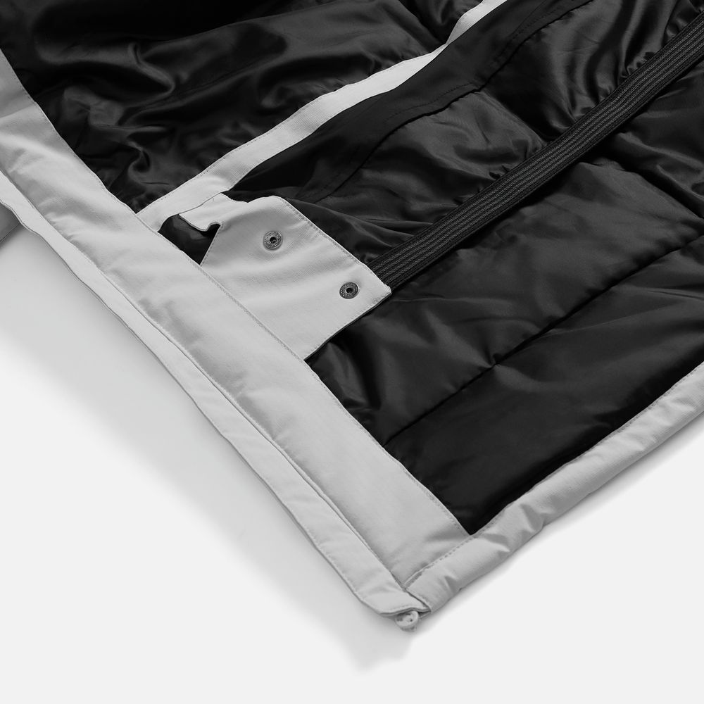 - Отстегивающийся капюшон с утяжкой и кнопками для плотного прилегания и защиты горла