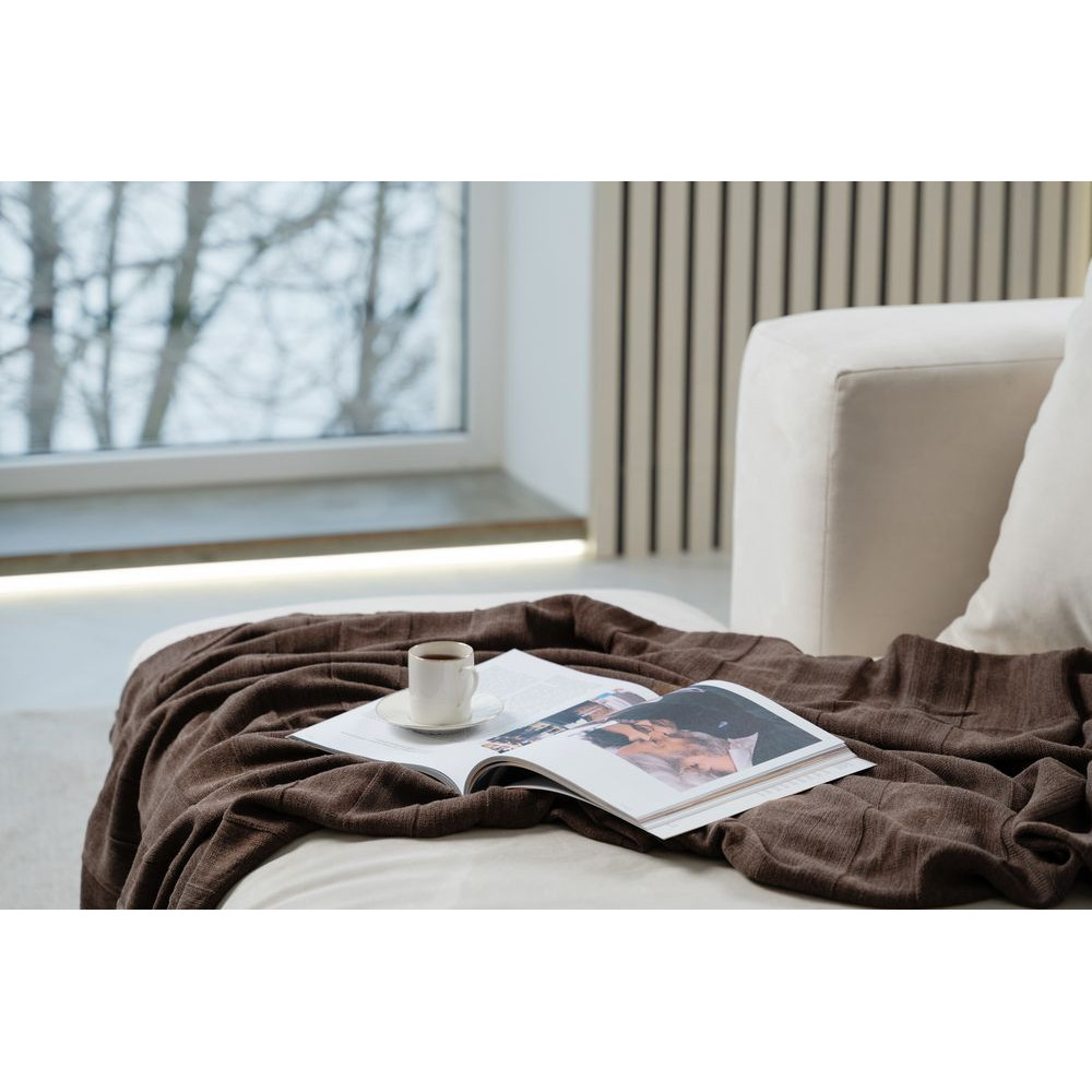 Минималистичный плед фактурной вязки из меланжевой пряжи.