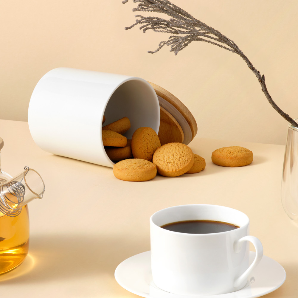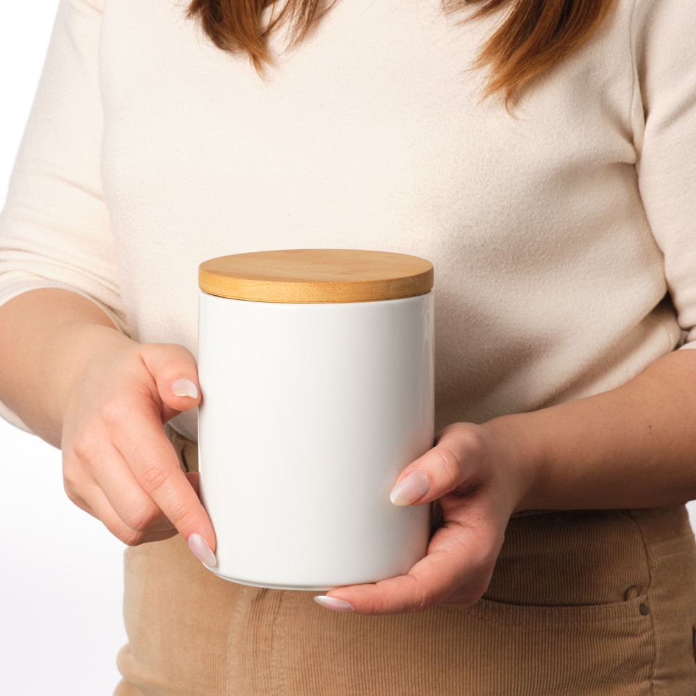 Контейнер прекрасно подойдет для хранения различных сыпучих продуктов: чая, кофе, сахара, круп и многого другого. Емкость классической круглой формы не только поможет хранить разнообразные сыпучие продукты, но и стильно дополнит интерьер кухни.—